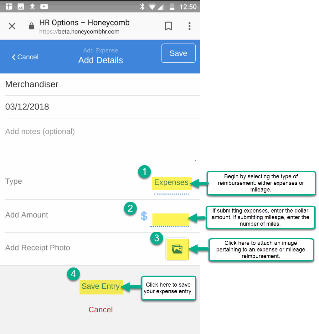 Entering Expenses via Mobile is very similar to entering expenses on a desktop computer.